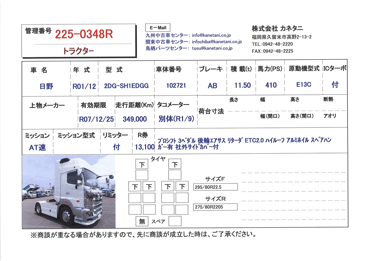 | 前輪サイズ | 295/80R22.5 | ||