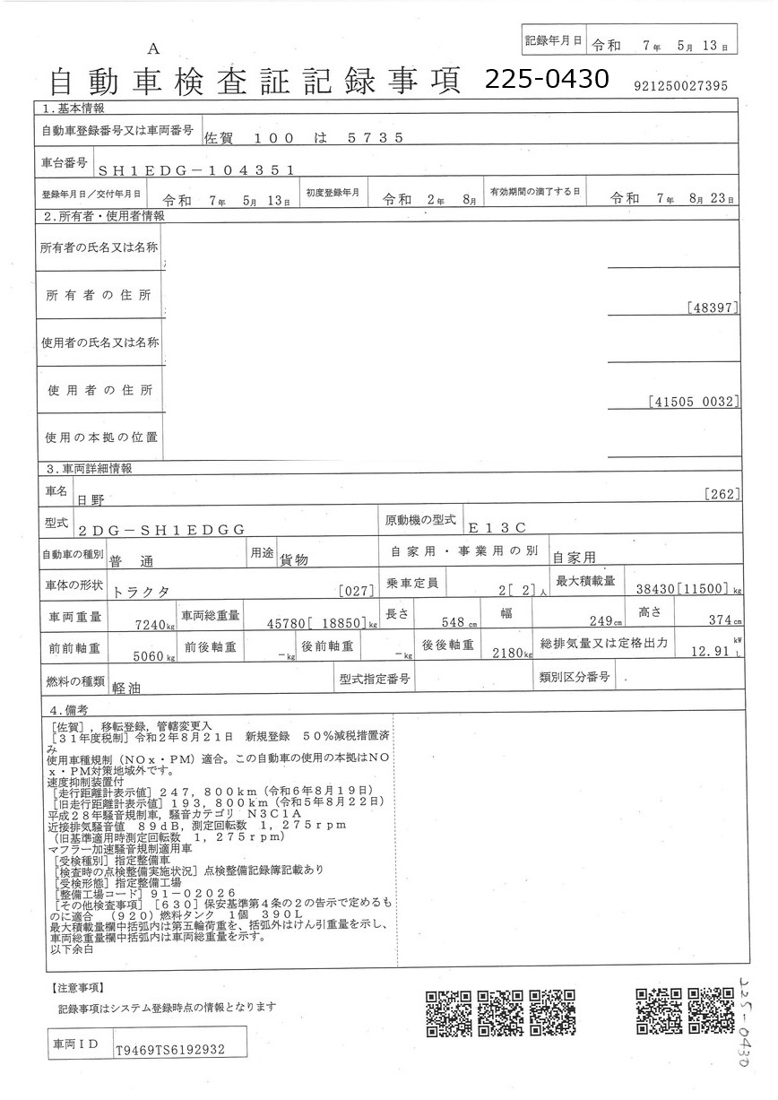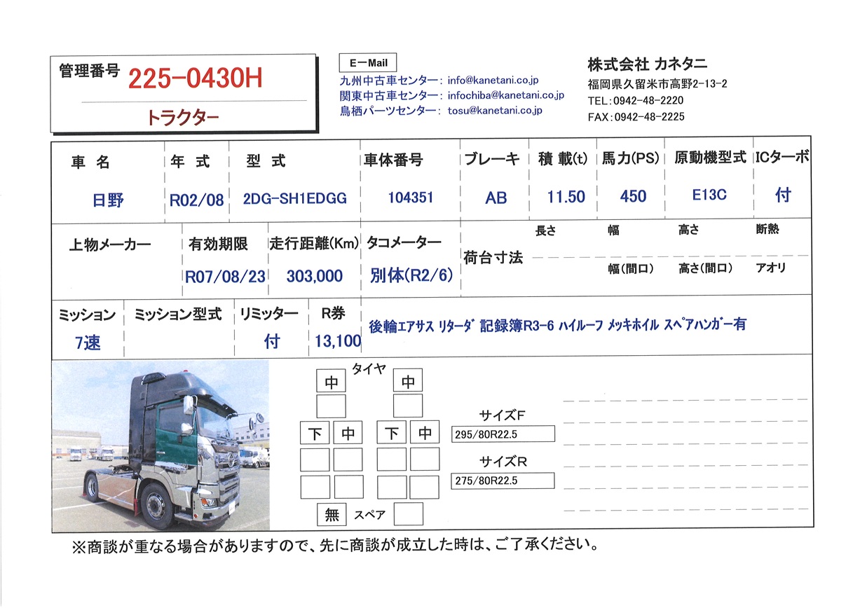 | 形状 | トラクター | 年式 | R02/08 |