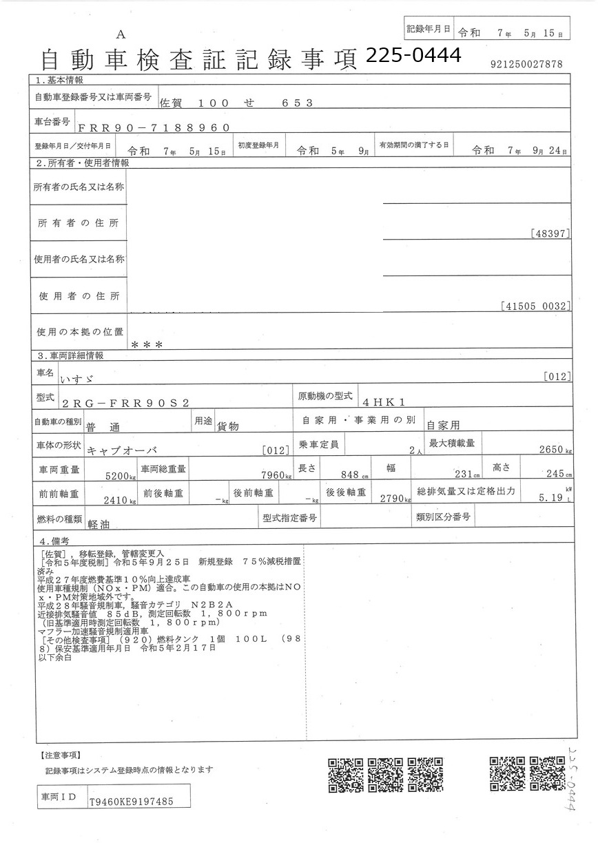 | 車両形式 | 2RG-FRR90S2 | エンジン馬力 | 240PS |