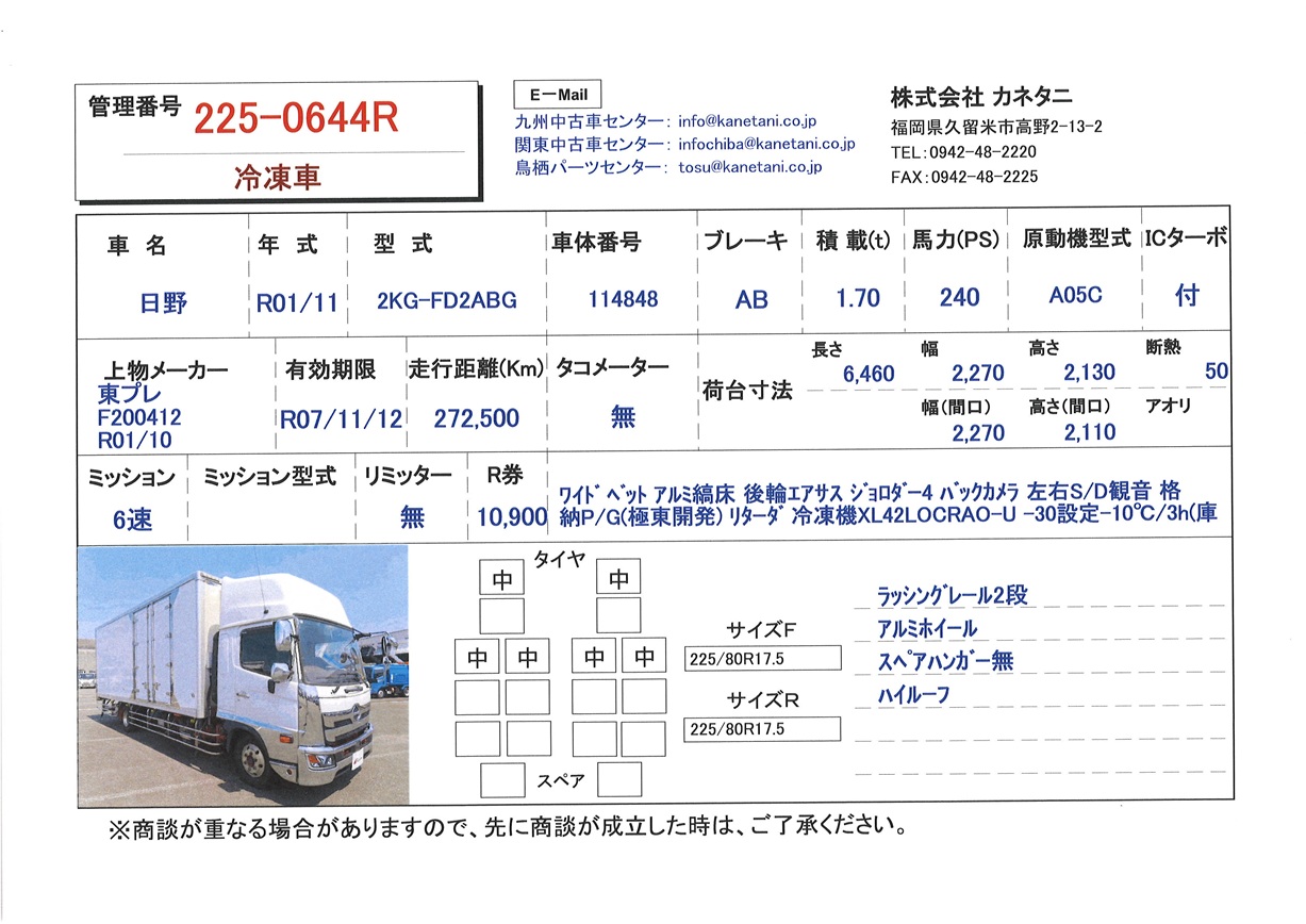 | 形状 | 冷凍車 | 年式 | R01/11 |