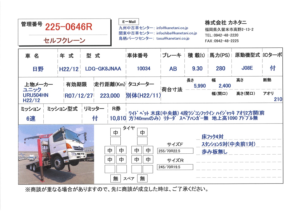 | 形状 | セルフクレーン | 年式 | H22/12 |