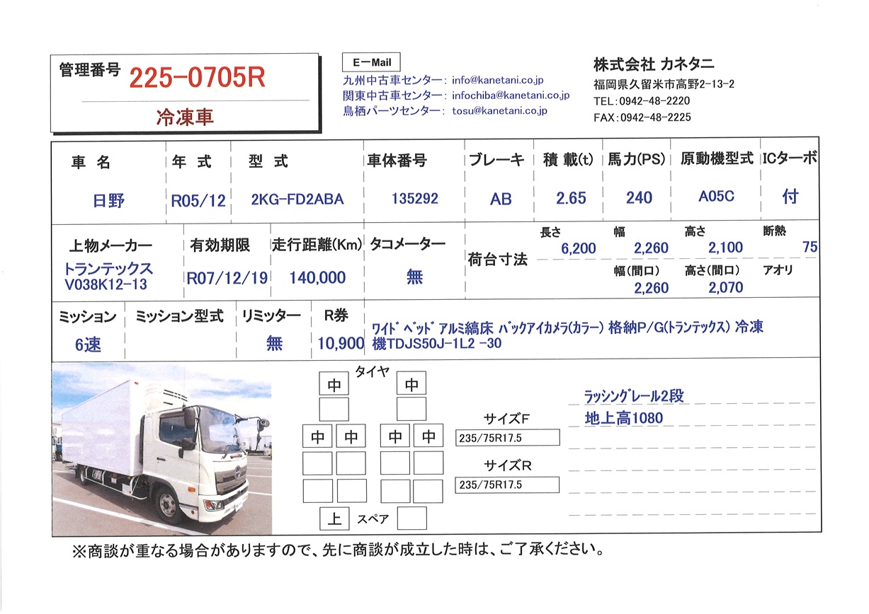| 形状 | 冷凍車 | 年式 | R05/12 |