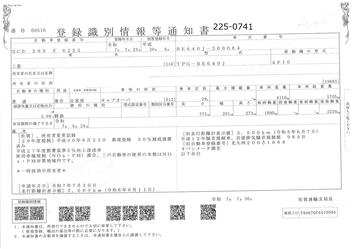 | 車検期限 | 抹消 | 走行距離 | 7,500Km |