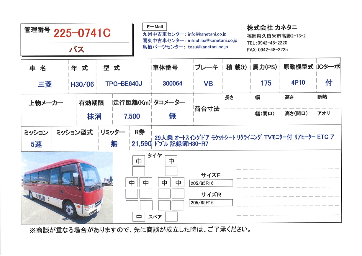 | 形状 | バス | 年式 | H30/06 |