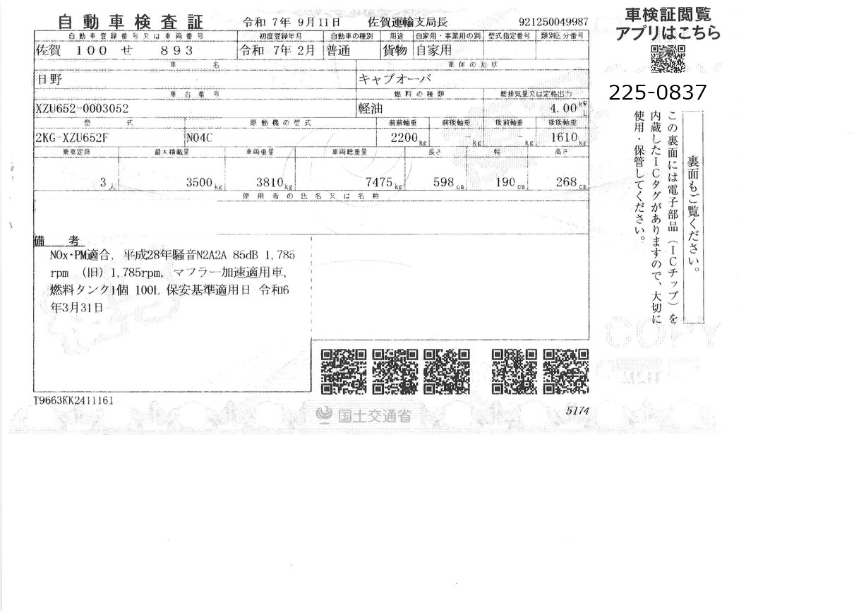 | 車検期限 | R09/02/27 | 走行距離 | 500Km |