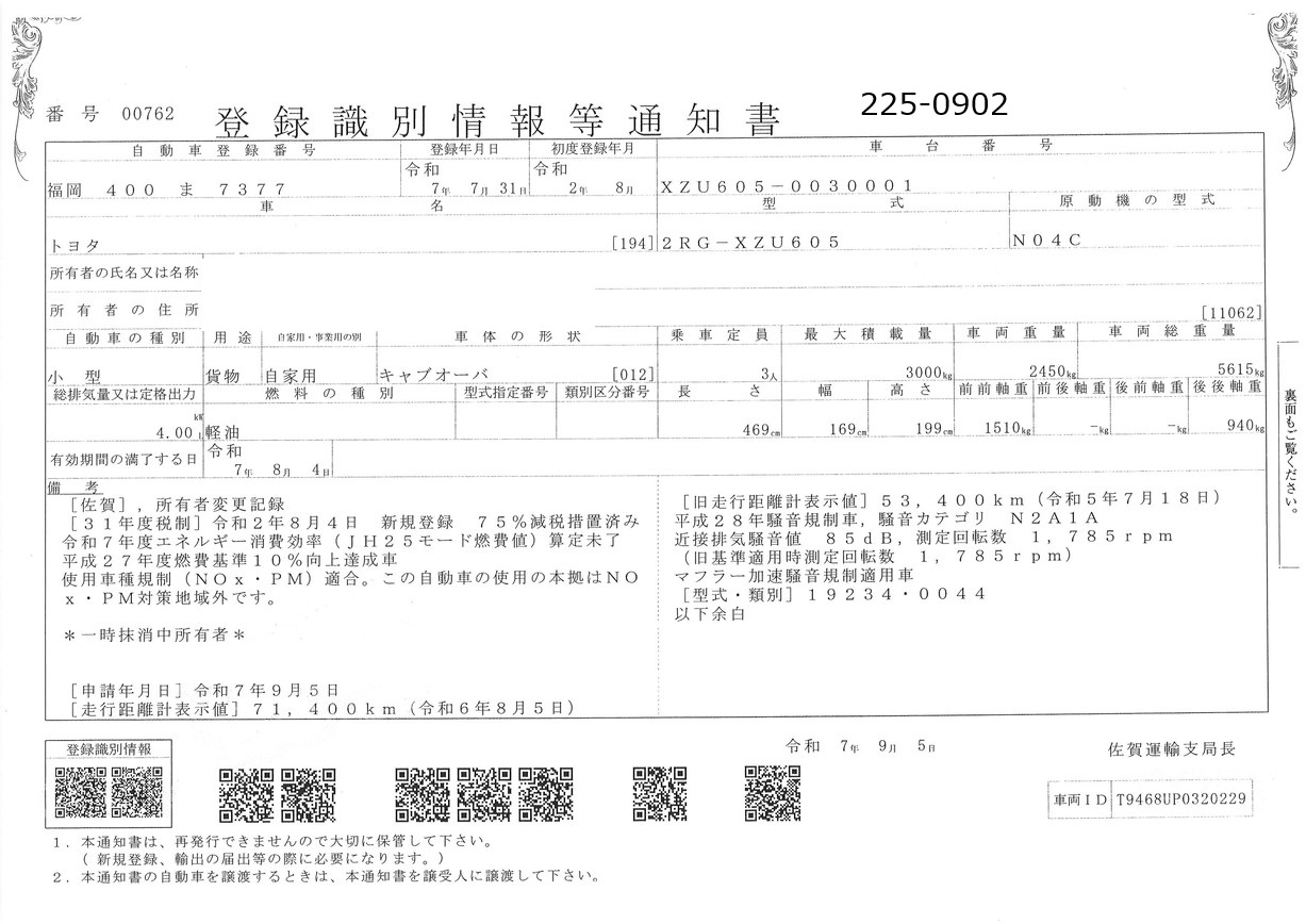 お問い合わせ番号:225-0902G| クラス(車両) | 小型 | メーカー | トヨタ |