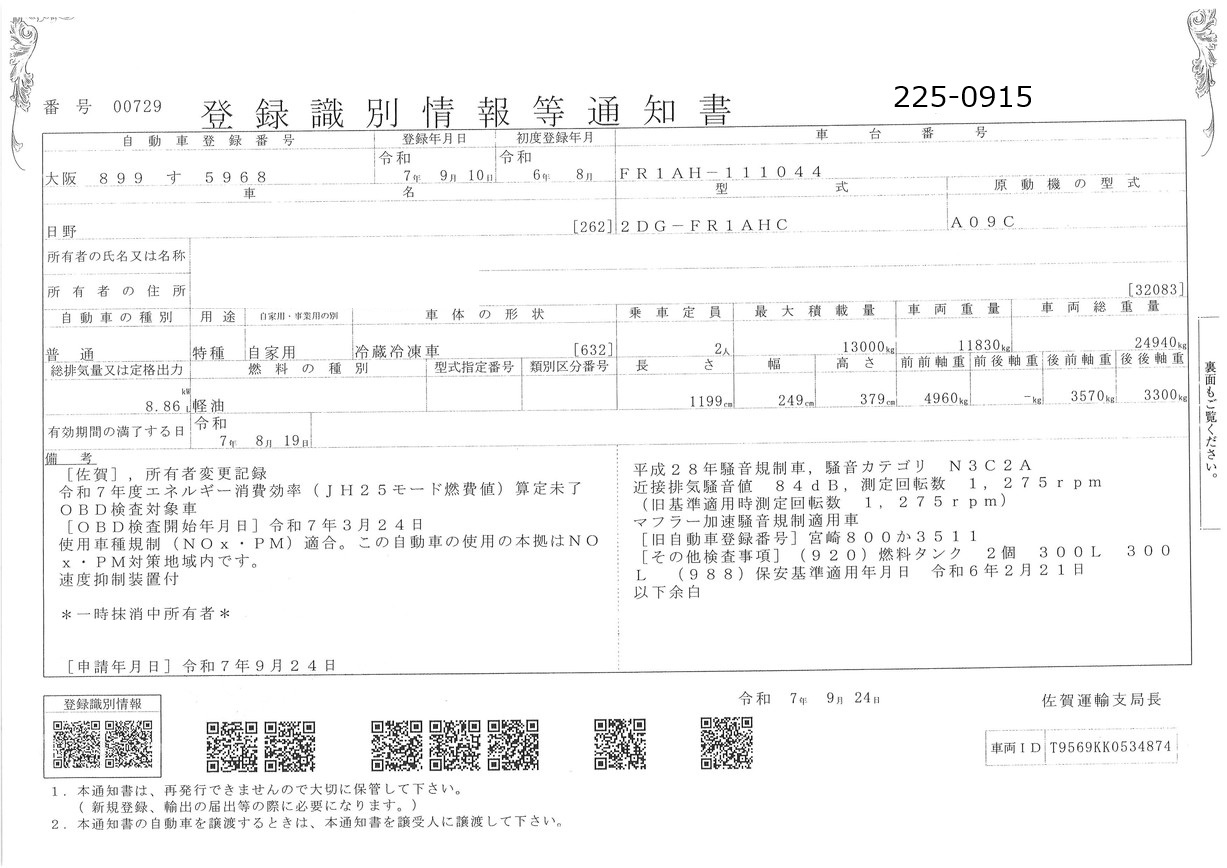 お問い合わせ番号:225-0915R| クラス(車両) | 大型 | メーカー | 日野 |