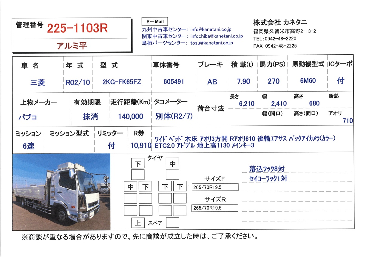 | 形状 | アルミ平 | 年式 | R02/10 |