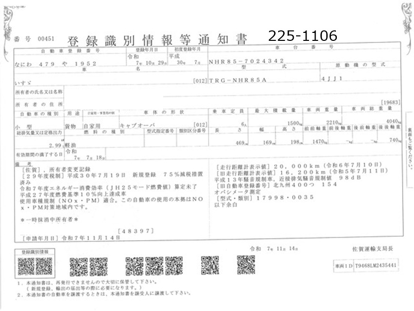 お問い合わせ番号:225-1106G| クラス(車両) | 小型 | メーカー | いすゞ |