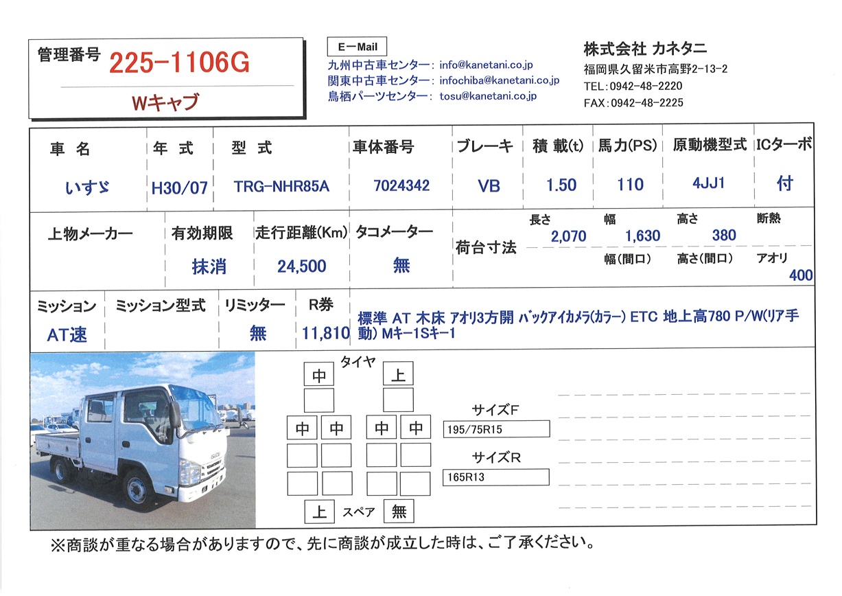 | 形状 | Wキャブ | 年式 | H30/07 |