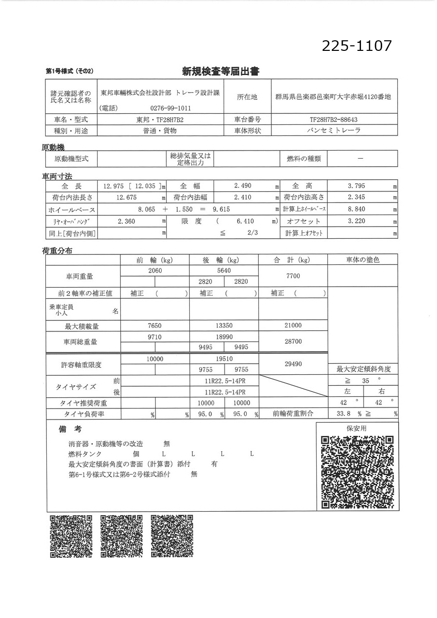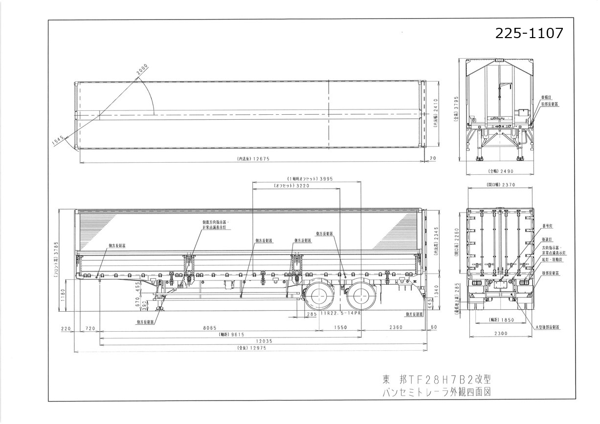 | 積載量 | 0Kg | 長(L) | 12670mm |