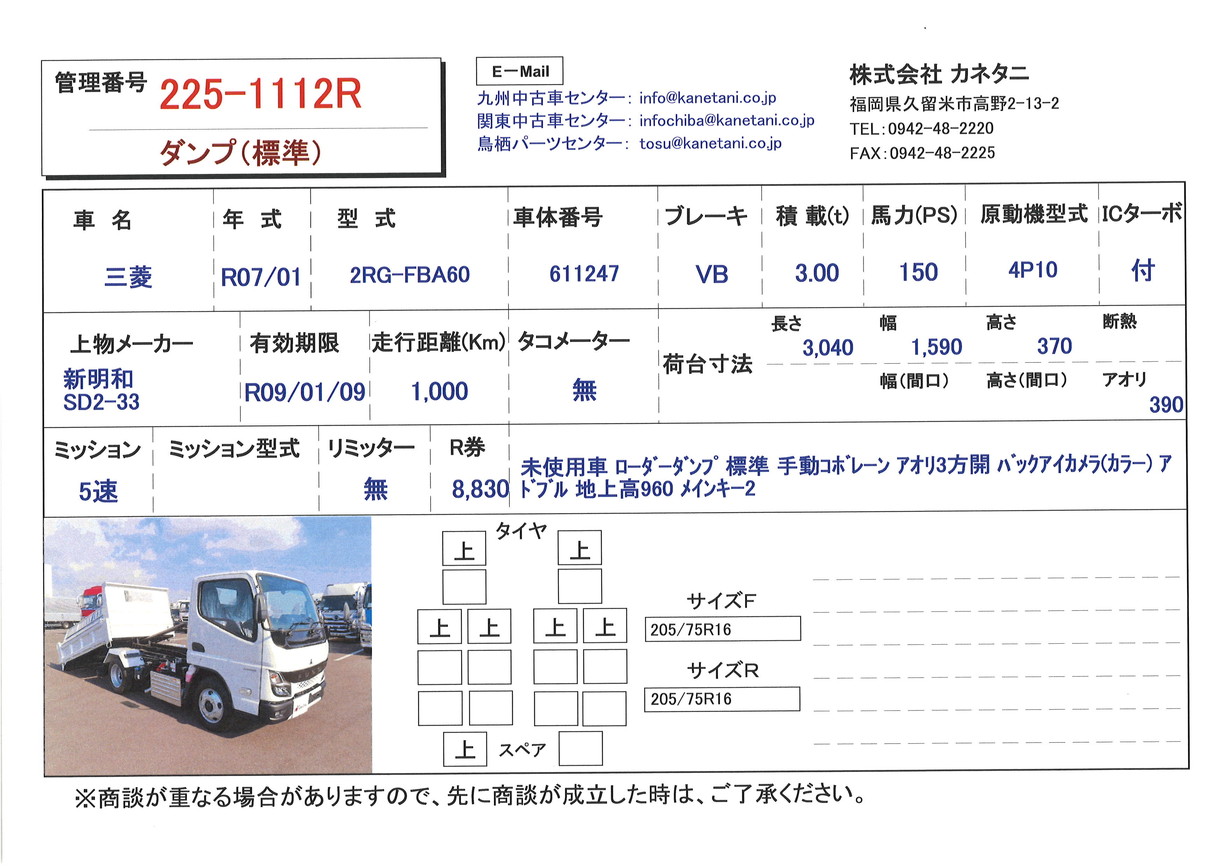 | 形状 | ダンプ(標準) | 年式 | R07/01 |