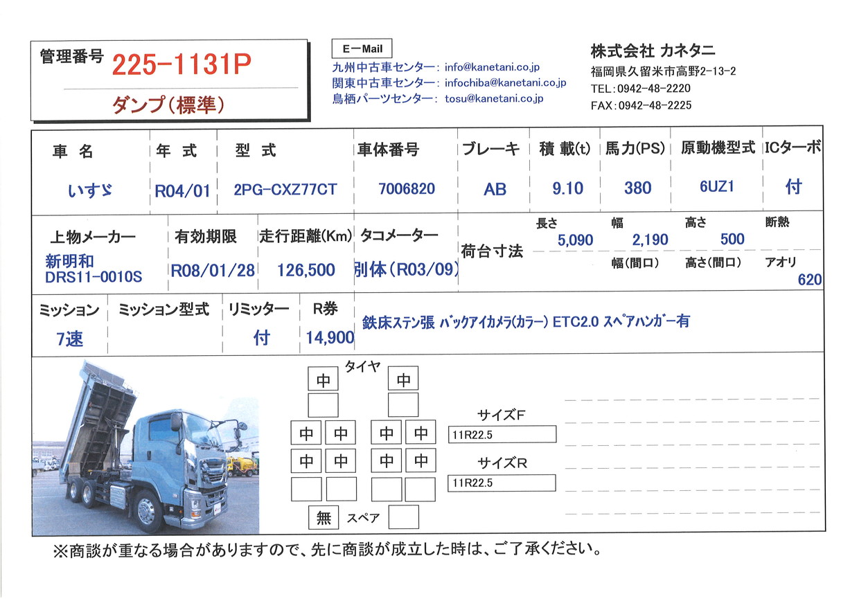| 形状 | ダンプ(標準) | 年式 | R04/01 |