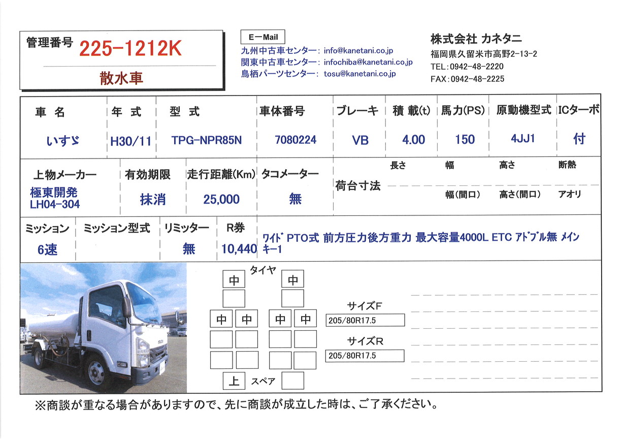 | 形状 | 散水車 | 年式 | H30/11 |