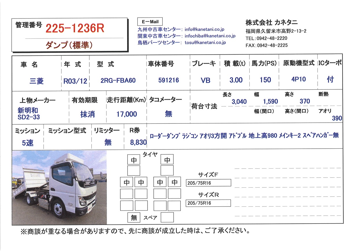 | 形状 | ダンプ(標準) | 年式 | R03/12 |
