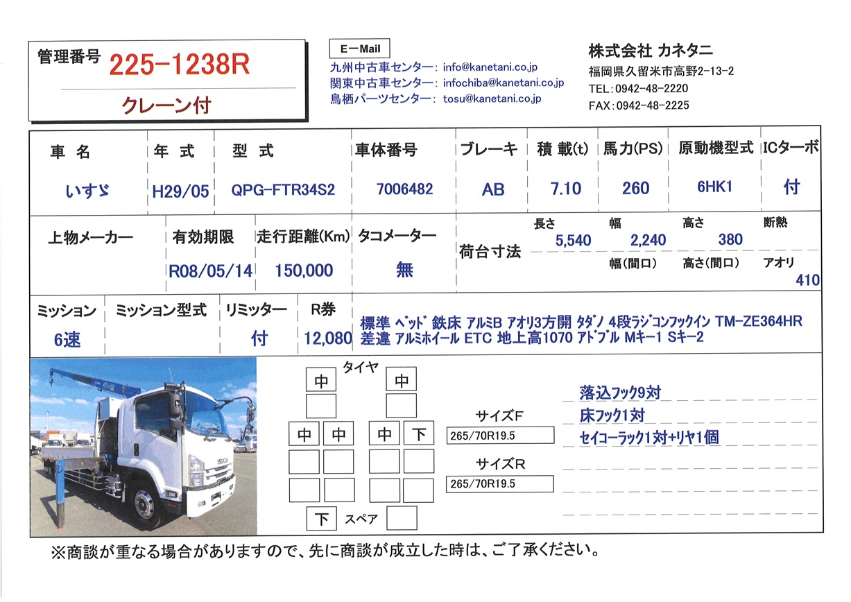 | 形状 | クレーン付 | 年式 | H29/05 |
