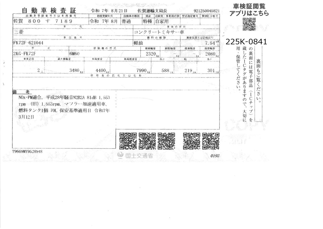 | 車両形式 | 2KG-FK72F | エンジン馬力 | 0PS |