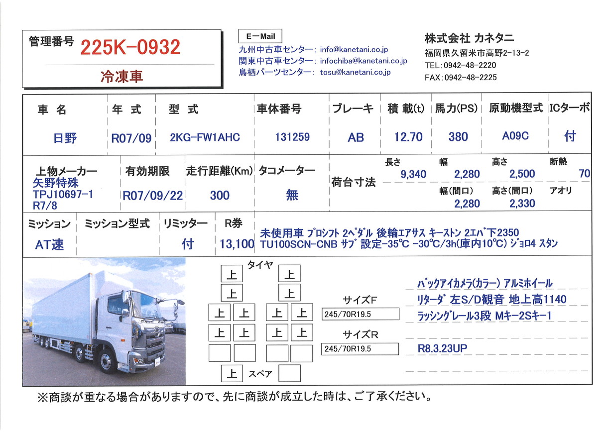 | 形状 | 冷凍車 | 年式 | R07/09 |