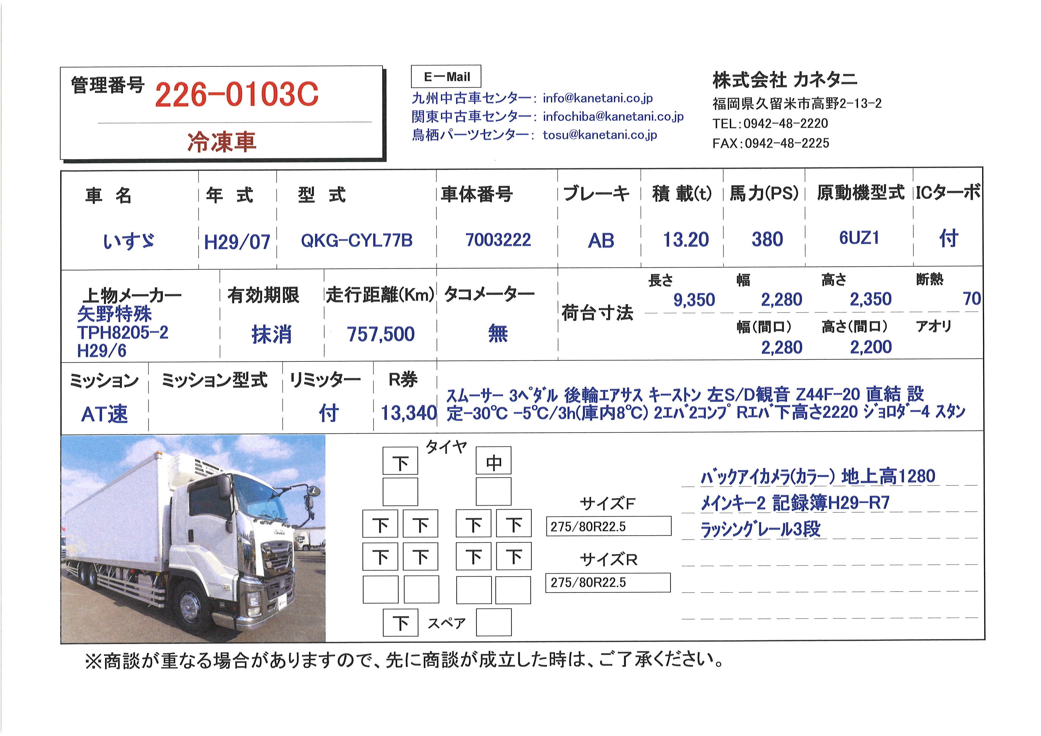 | 前輪サイズ | 275/80R22.5 | ||