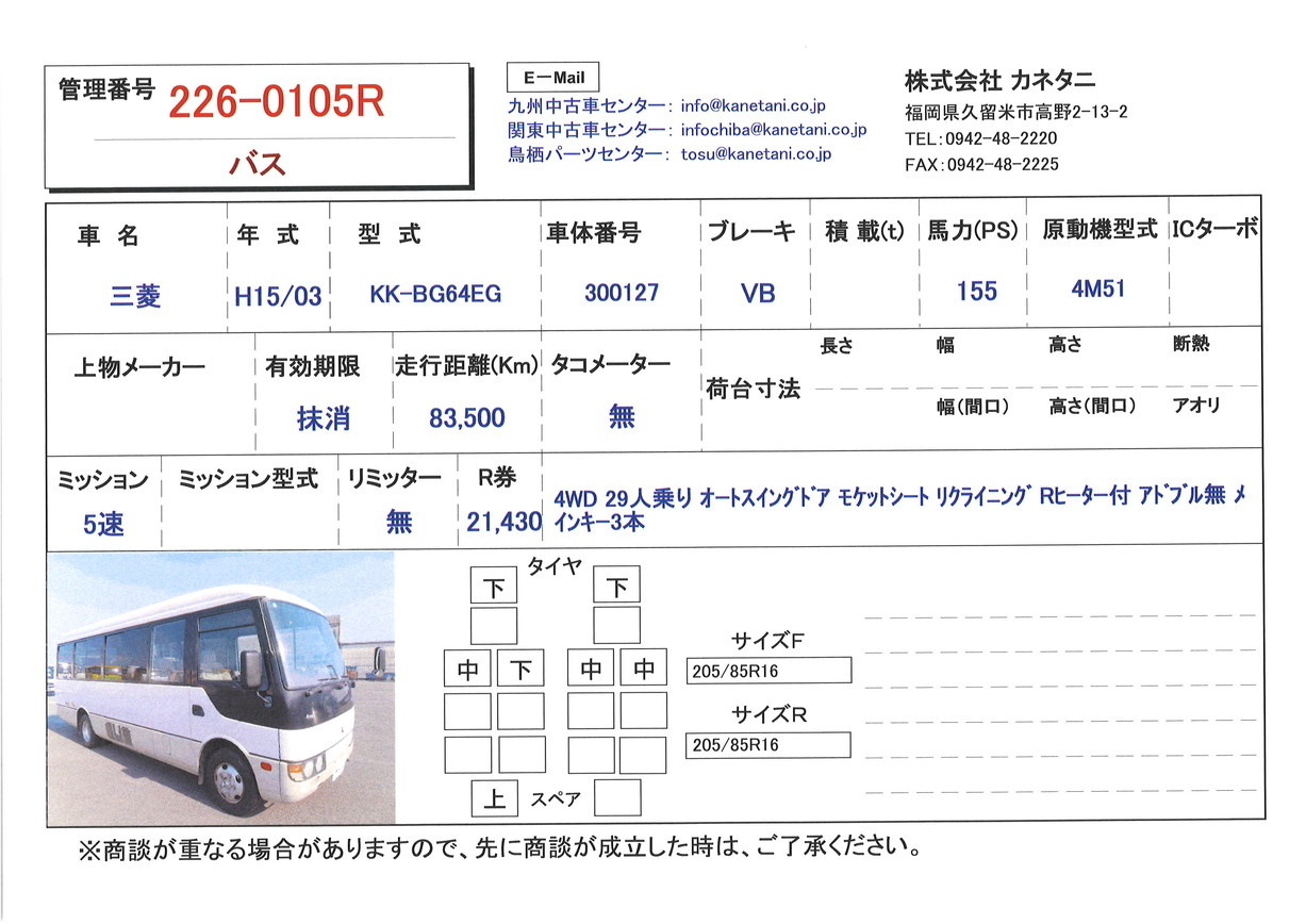| 形状 | バス | 年式 | H15/03 |