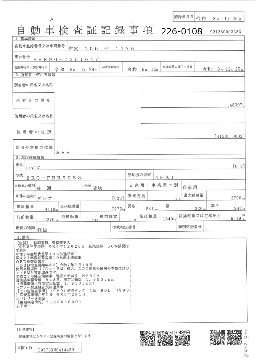 | リサイクル券 | 12870 | タイヤ状態 |