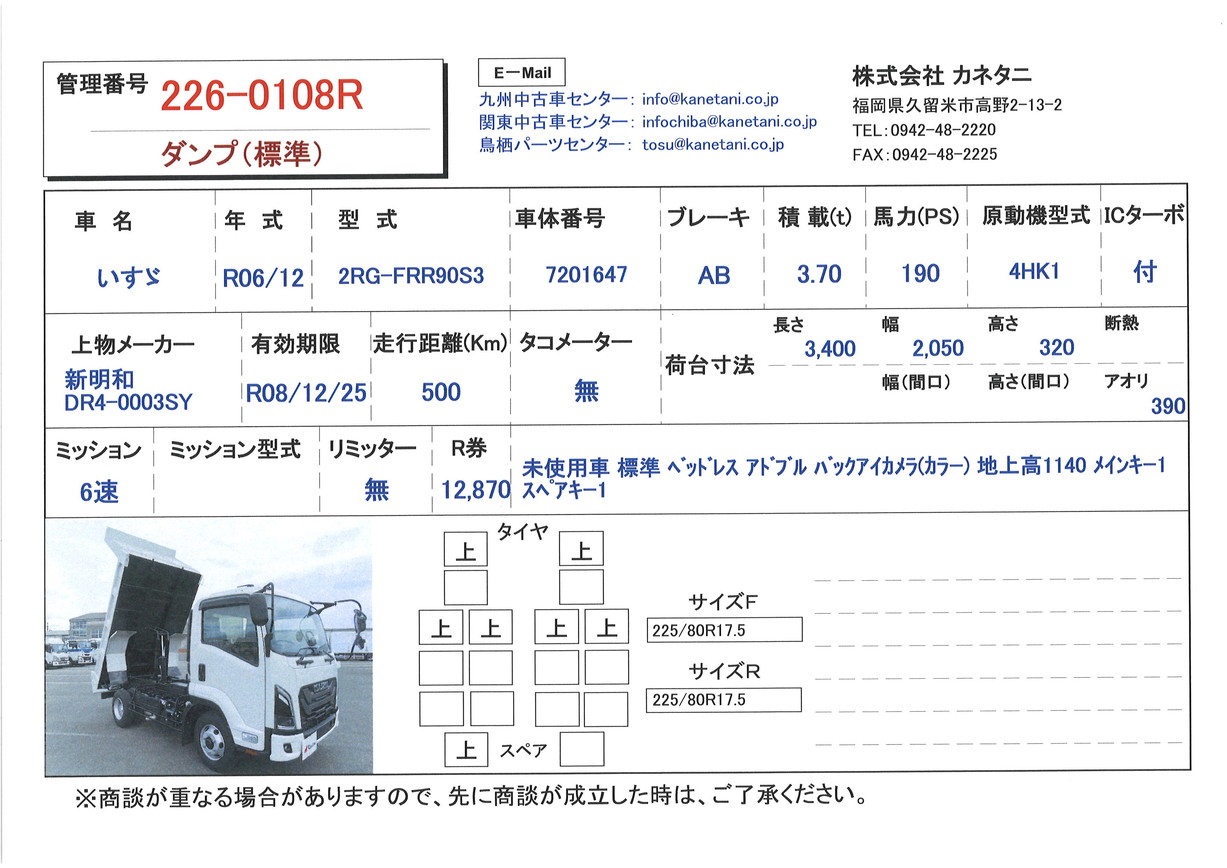 | 形状 | ダンプ(標準) | 年式 | R06/12 |