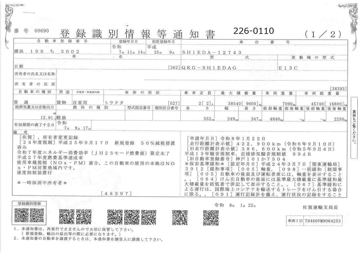 | 車両形式 | QKG-SH1EDAG | エンジン馬力 | 450PS |