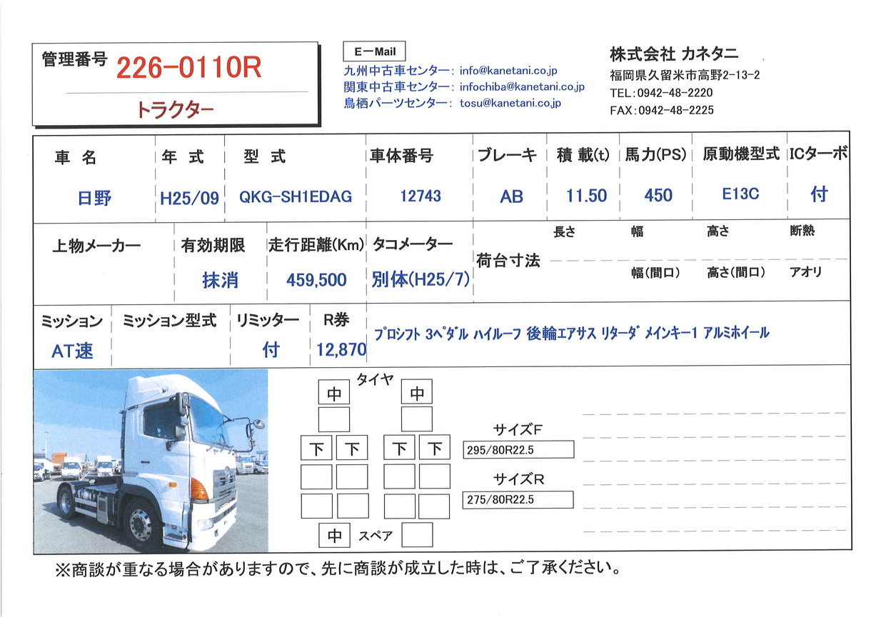 お問い合わせ番号:226-0110R| クラス(車両) | 大型 | メーカー | 日野 |