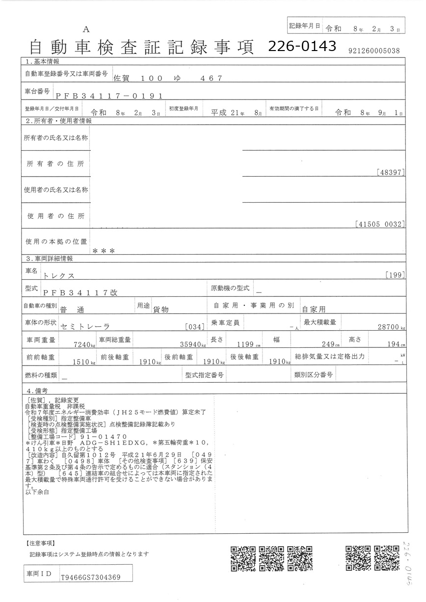 | 形状 | セミトレーラー | 年式 | H21/08 |