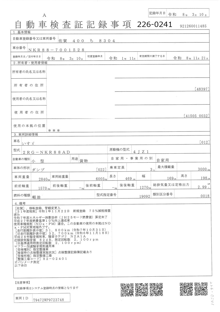 | 車両形式 | 2RG-NKR88AD | エンジン馬力 | 150PS |