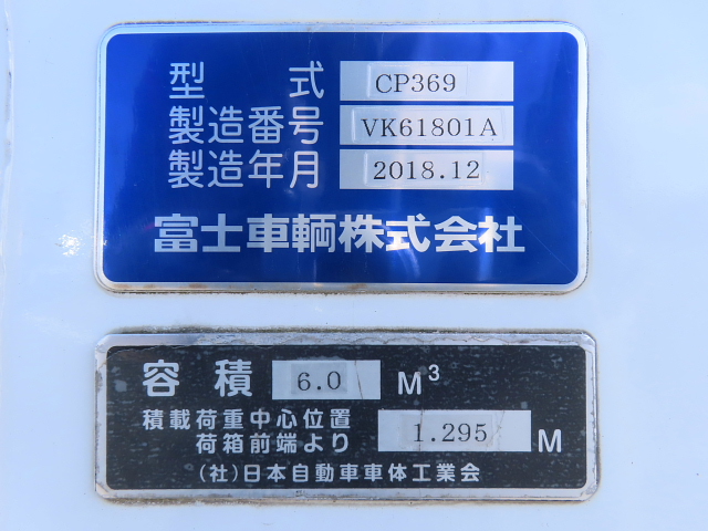 | 備考 | ワイド アドブル 富士車輌 CP369 H30/12 容積6.0立米 巻込式 連続作動車 バックアイカメラ(カラー) メインキー1 スペアキー1 |