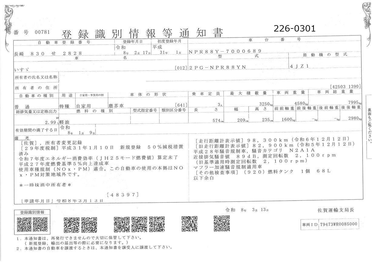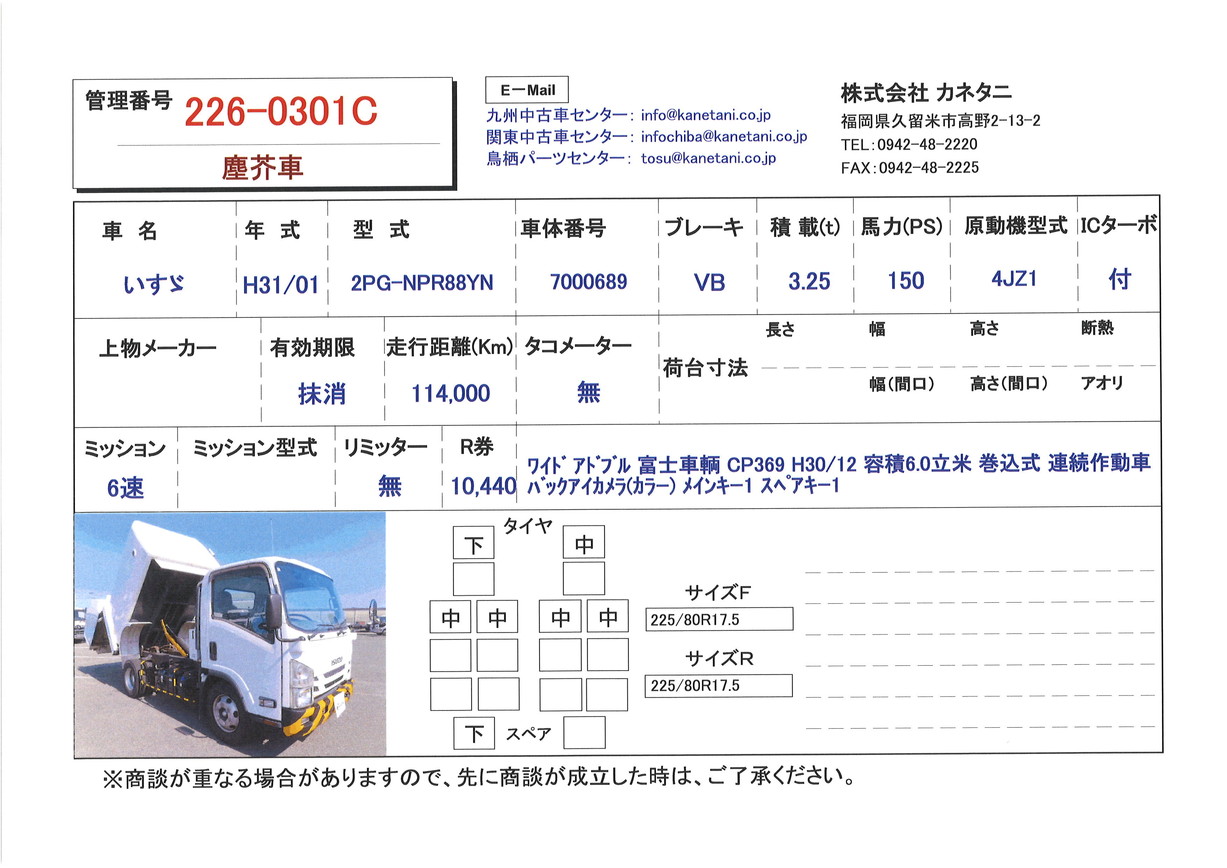 | 形状 | 塵芥車 | 年式 | H31/01 |