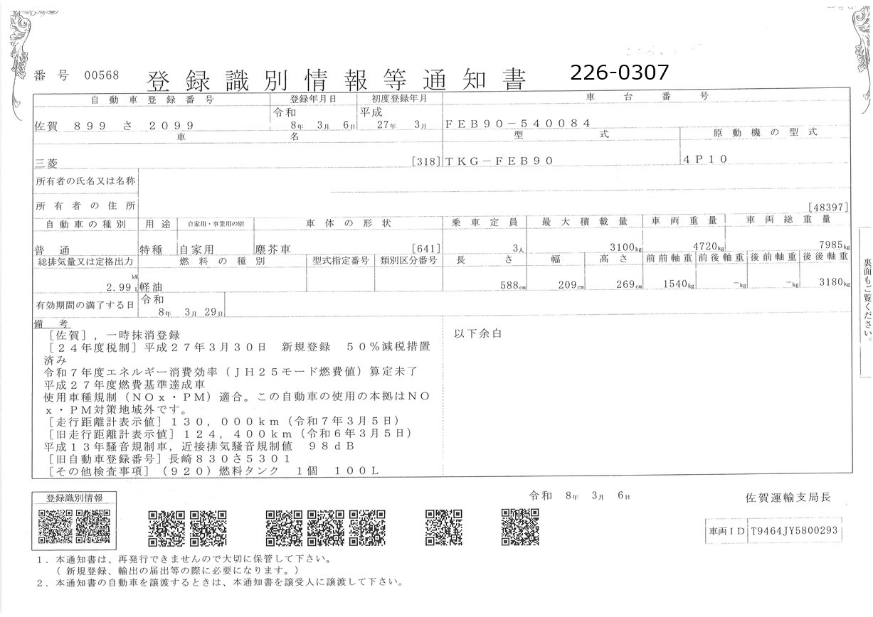 | リサイクル券 | 8830 | タイヤ状態 |