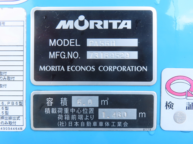 | 備考 | AT ワイド アドブル モリタ PA56H 容積6.0立米 プレス式 連続作動車 バックアイカメラ(カラー) メインキー2 スペアハンガー無 記録簿H29-R7 |