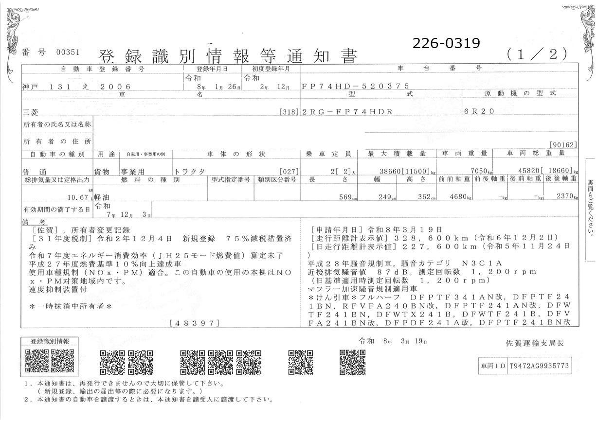 | 形状 | トラクター | 年式 | R02/12 |