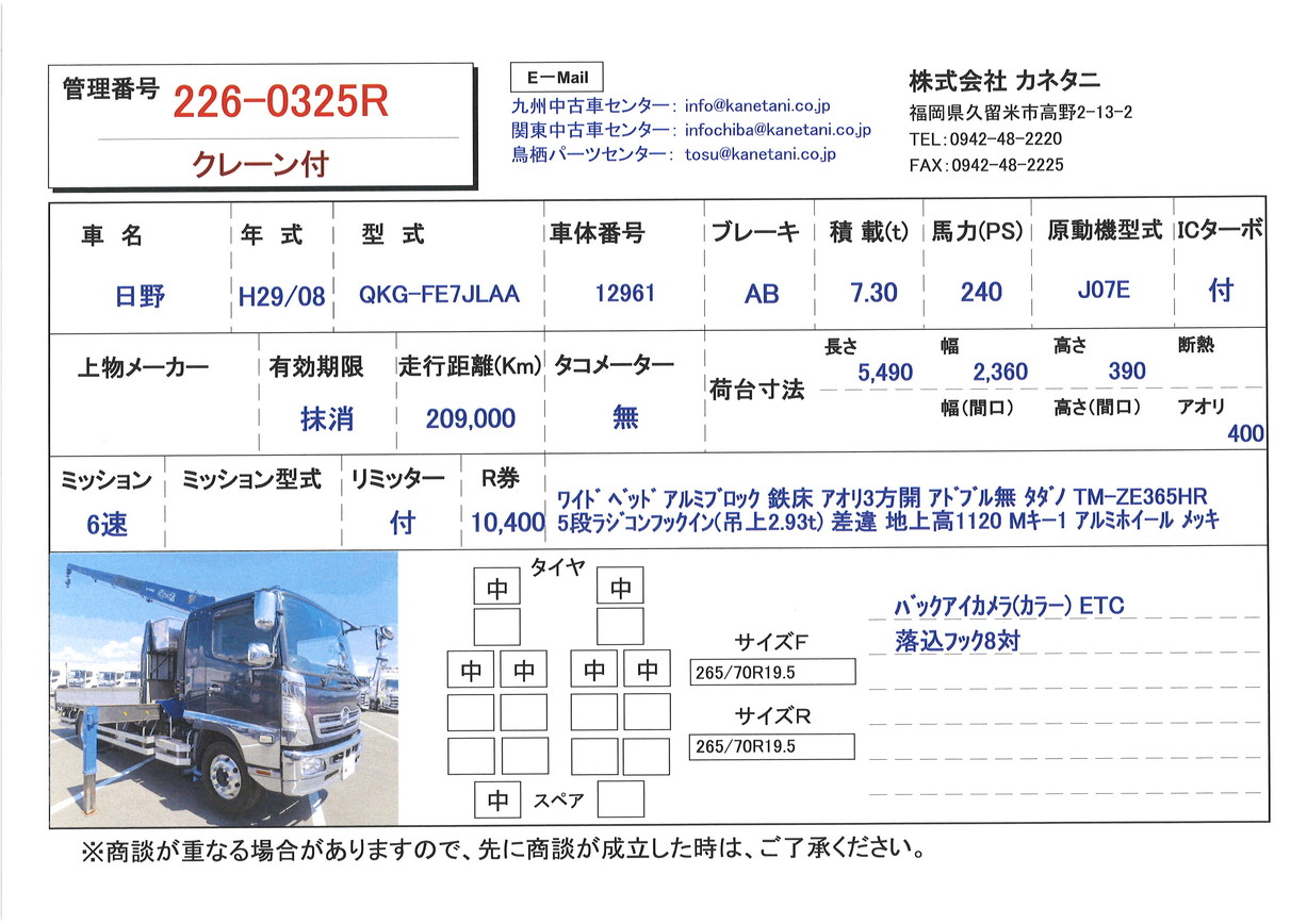 | 形状 | クレーン付 | 年式 | H29/08 |