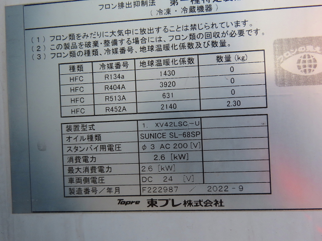| 形状 | 冷凍車 | 年式 | R04/11 |