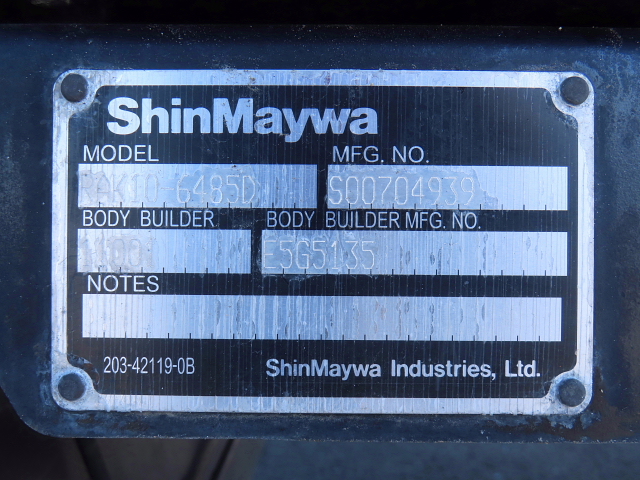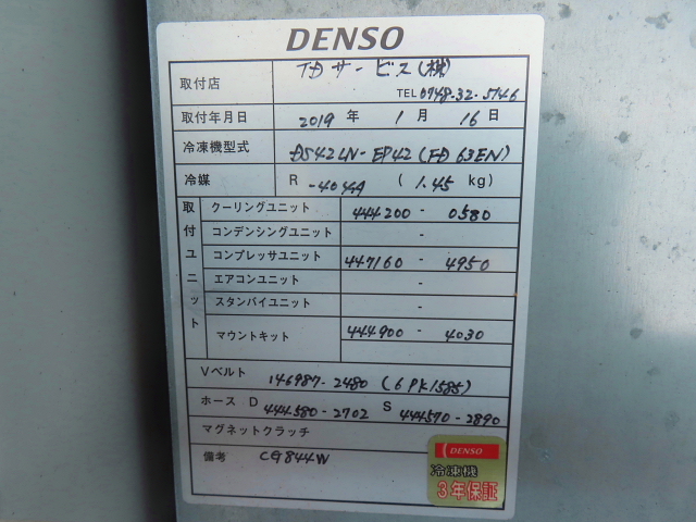 | 備考 | ワイド ベッド 後輪エアサス システムフロア 左S/D片開 アドブル DS42LN-EP42 設定-30℃ -23℃/3h(庫内13℃) 格納P/G(新明和) 地上高1050 Mキー1 Sキー1 |