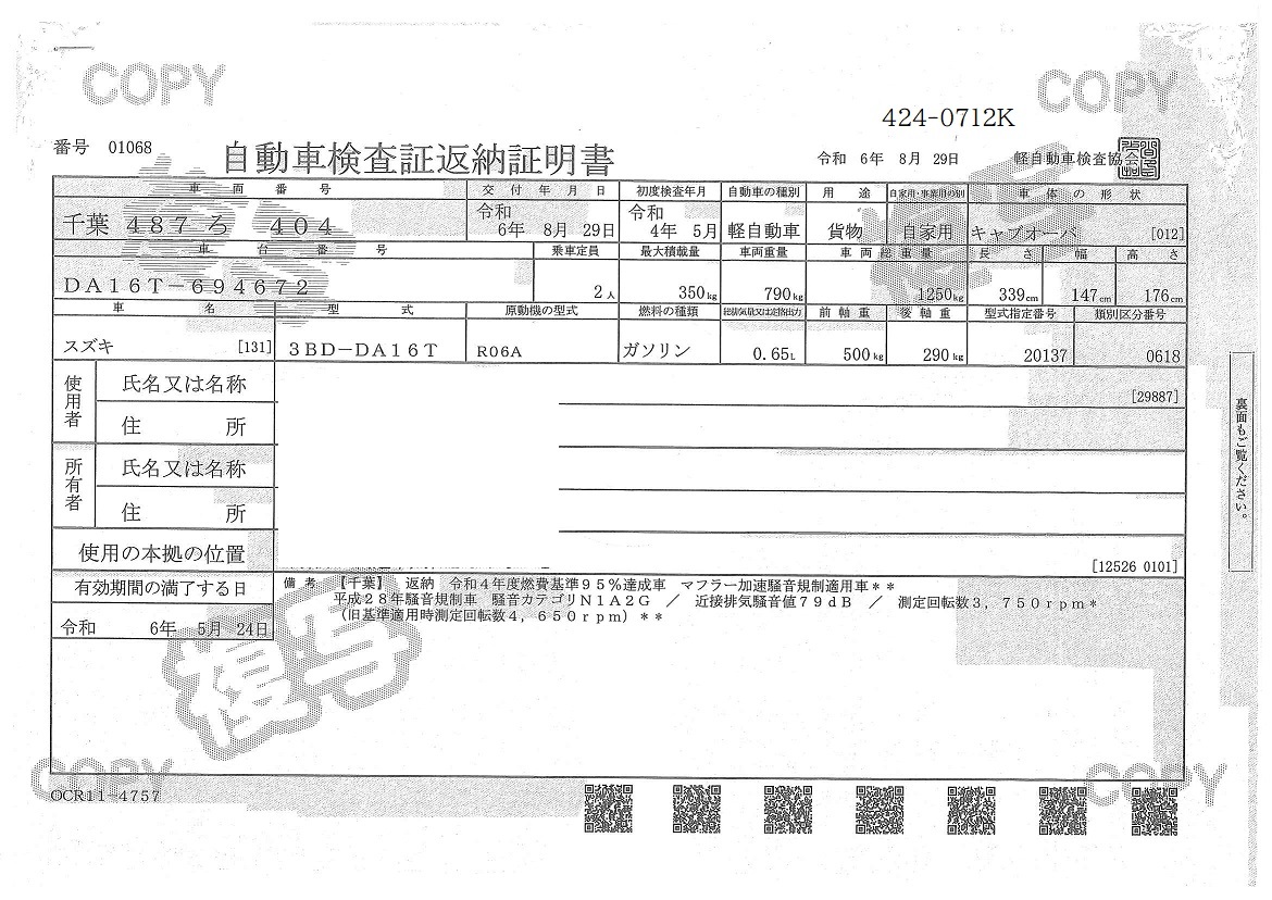 | 車両形式 | 3BD-DA16T | エンジン馬力 | 50PS |