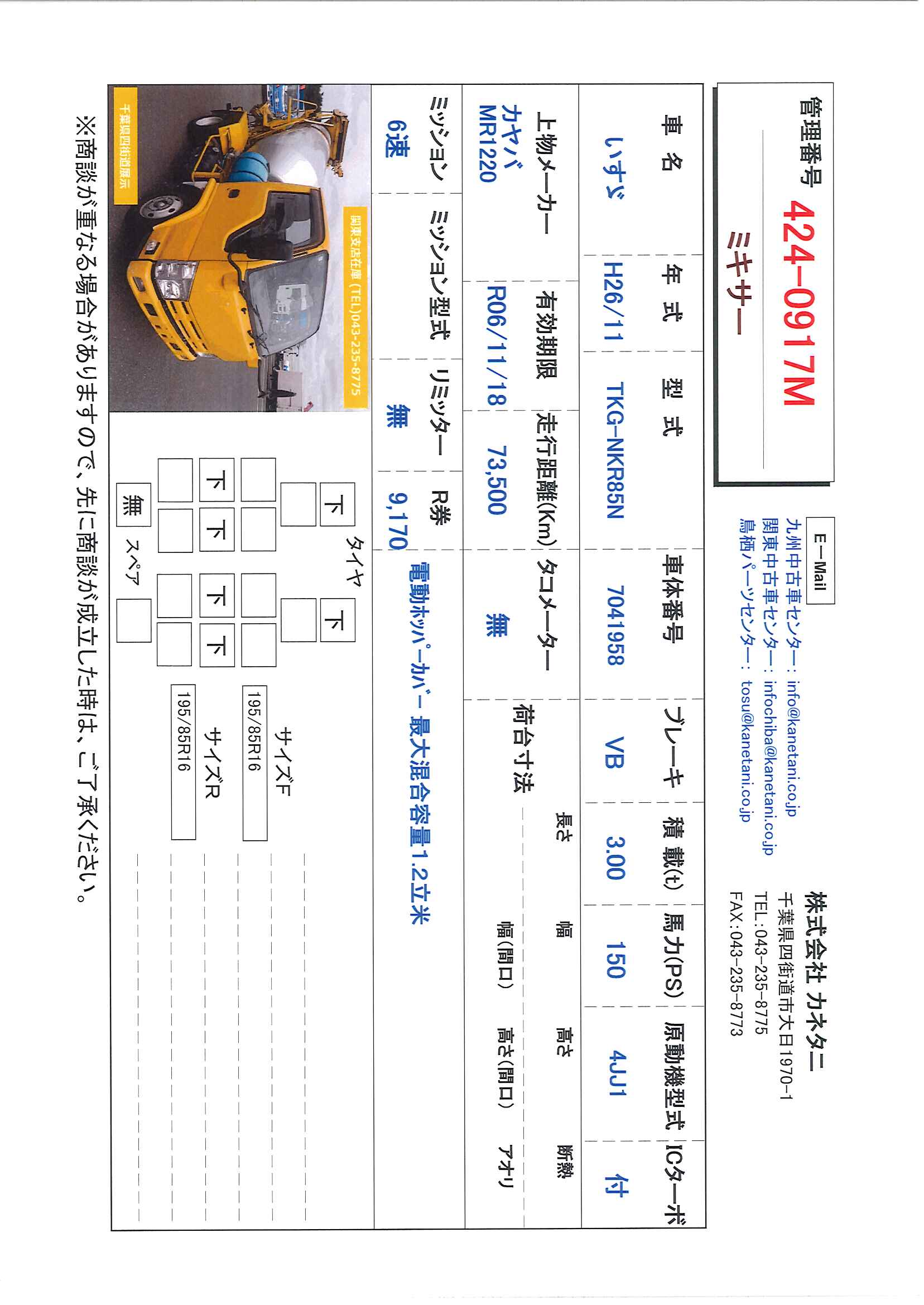 | 形状 | ミキサー | 年式 | H26/11 |