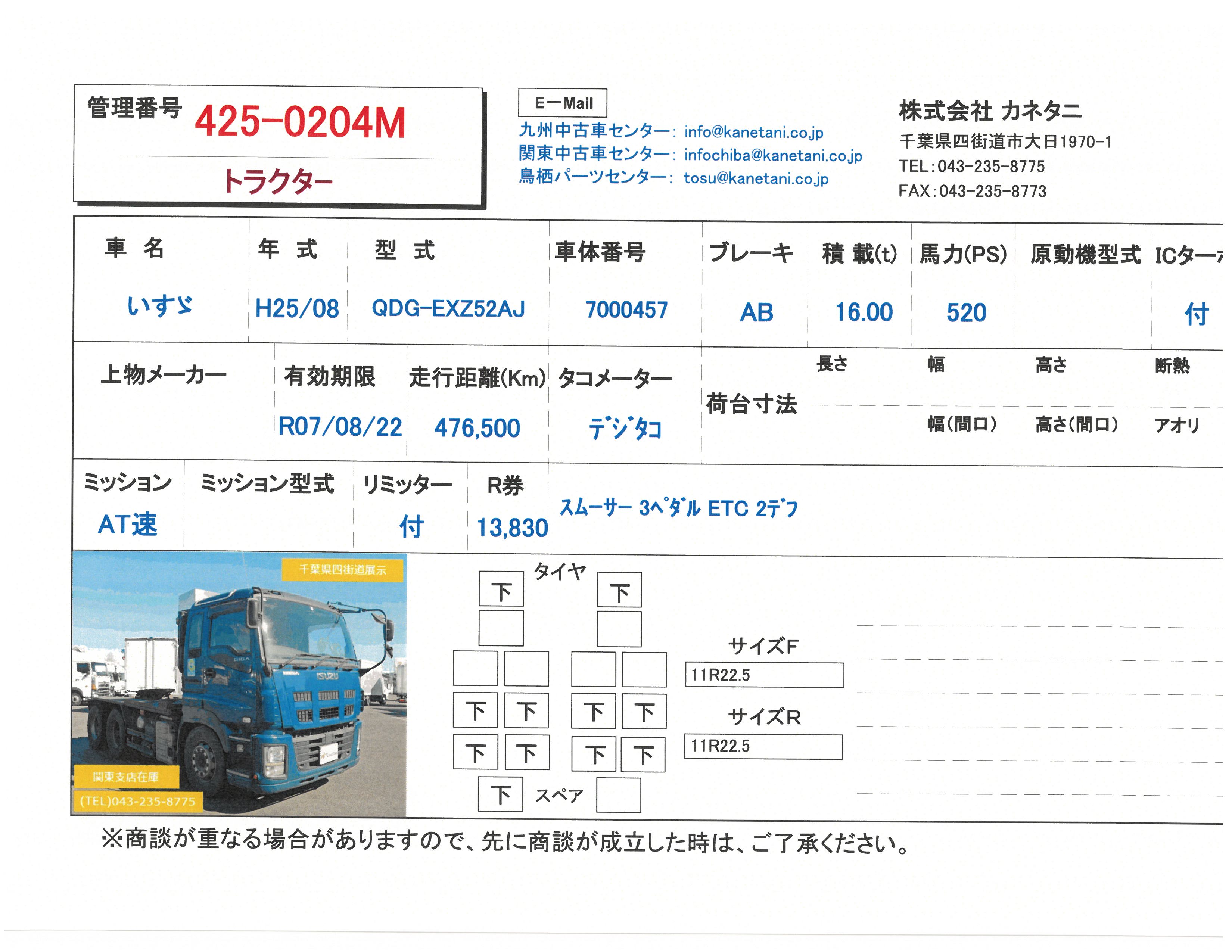 | 形状 | トラクター | 年式 | H25/08 |
