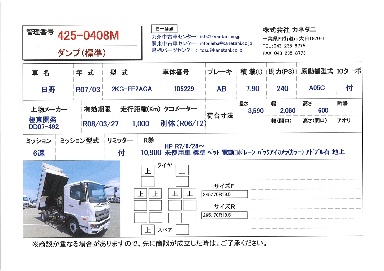 形状 | ダンプ(標準) | 年式 | R07/03 |