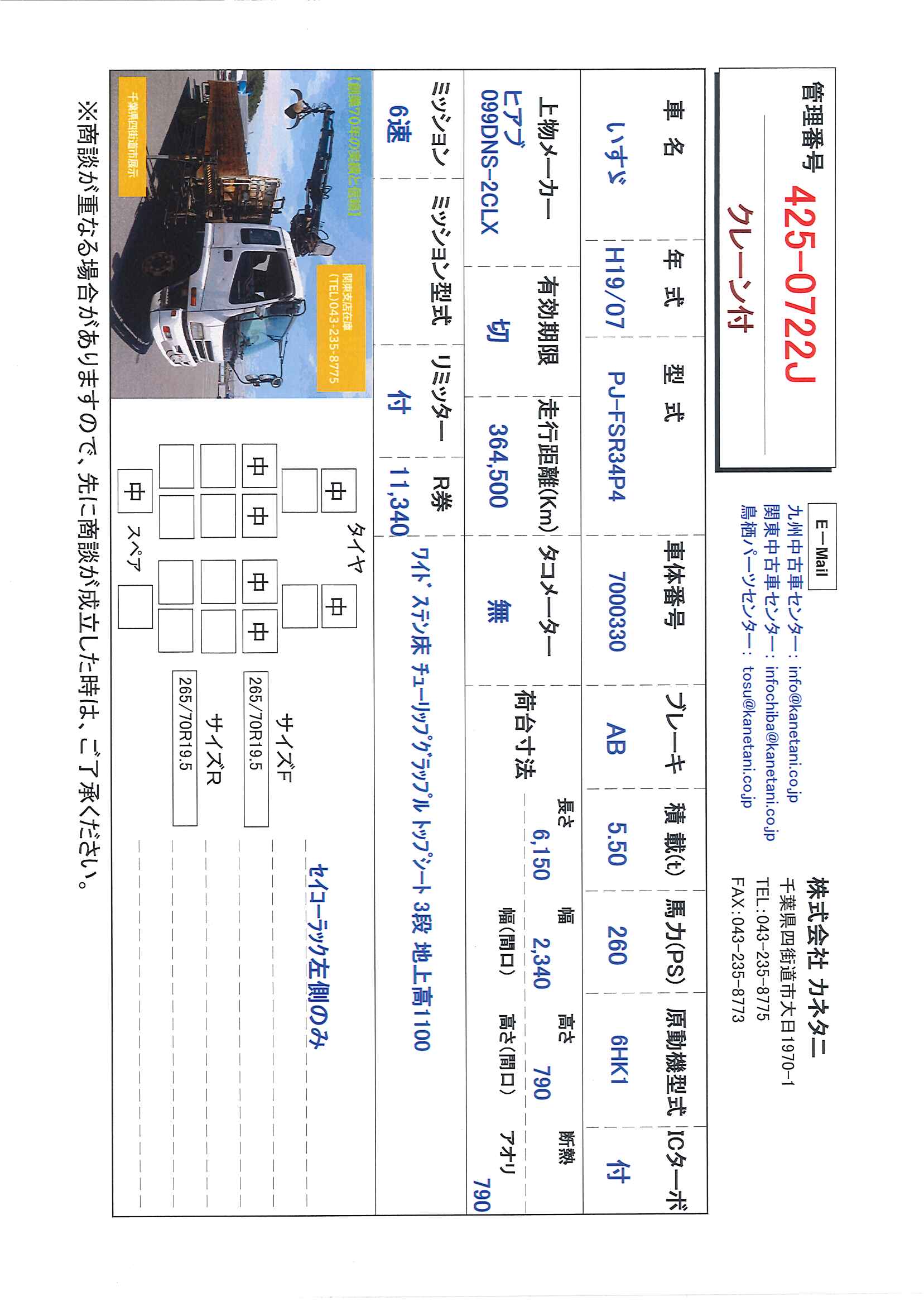 | 形状 | クレーン付 | 年式 | H19/07 |