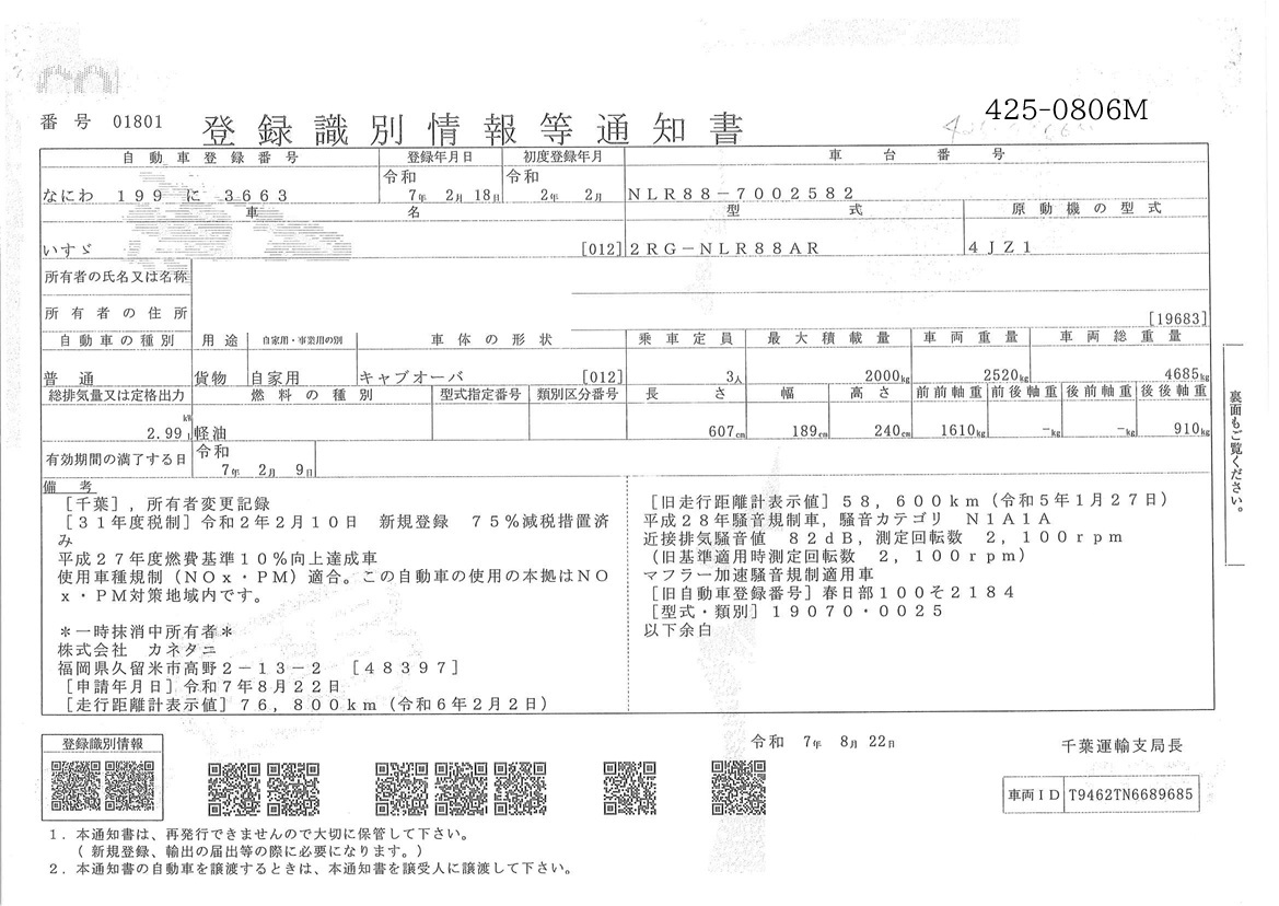 | 車両形式 | 2RG-NLR88AR | エンジン馬力 | 150PS |