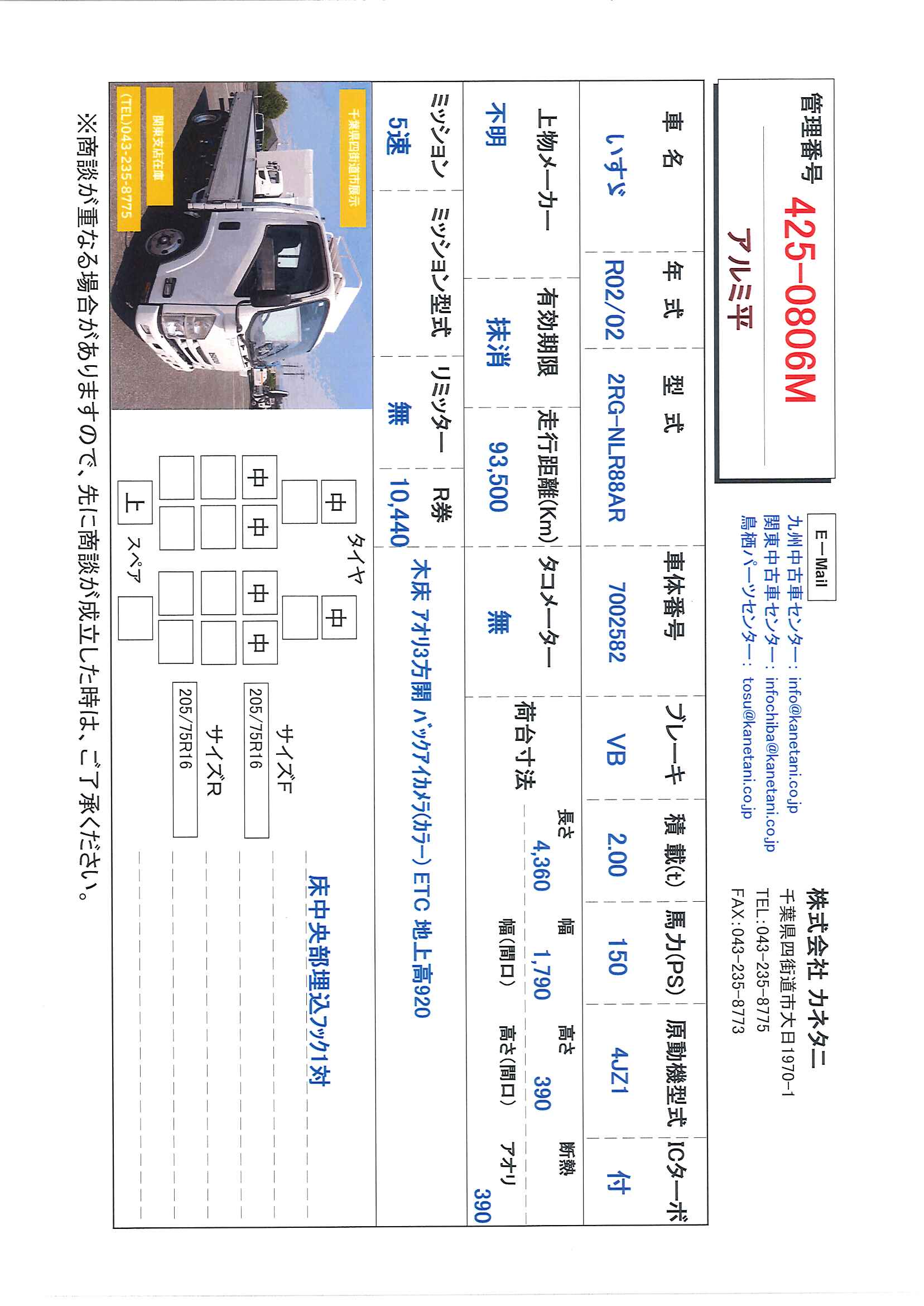 | 形状 | アルミ平 | 年式 | R02/02 |