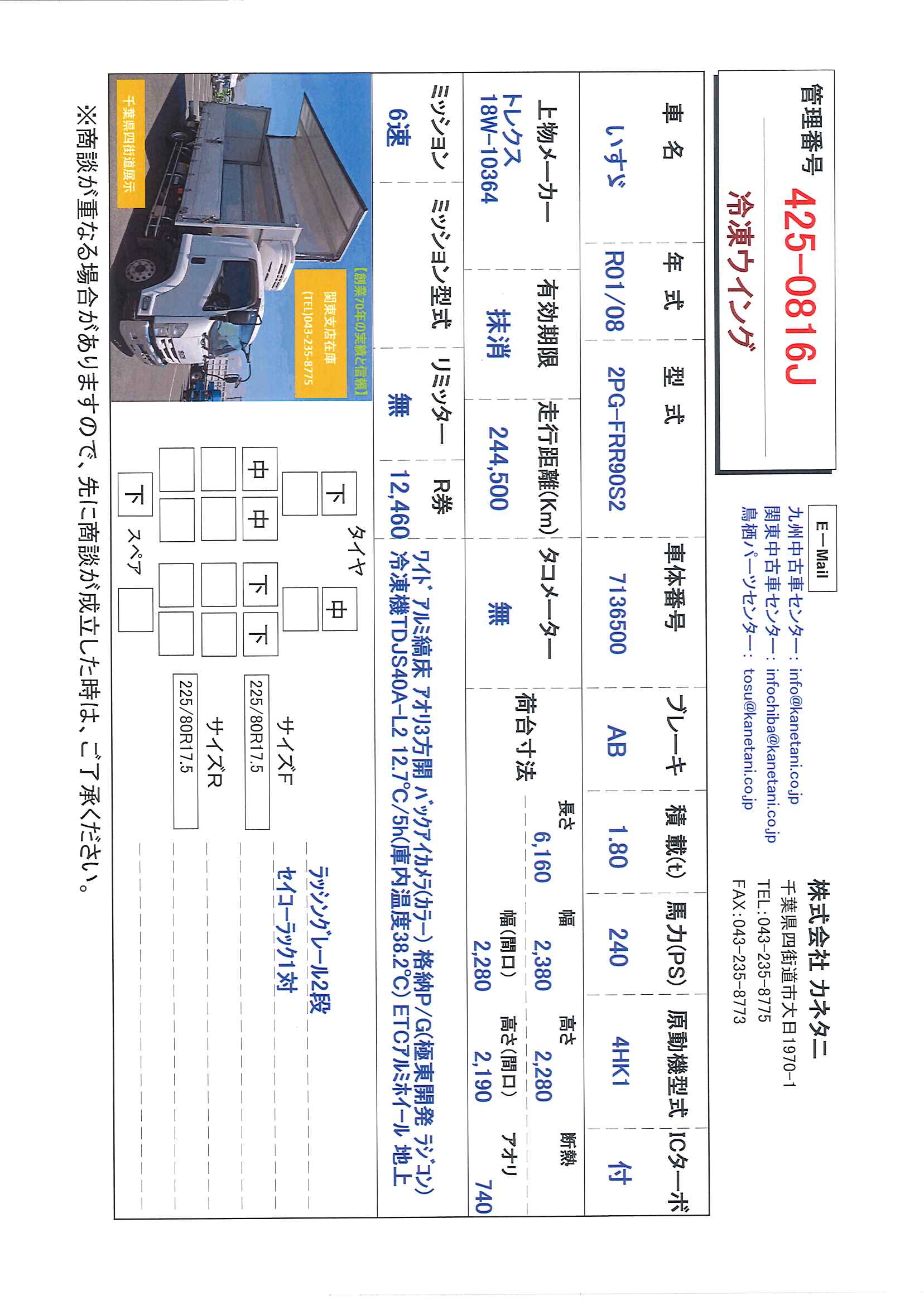 | 形状 | 冷凍ウイング | 年式 | R01/08 |