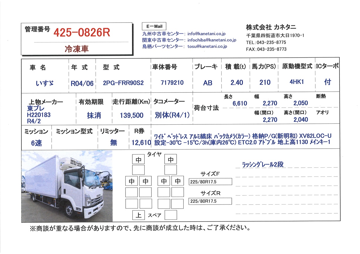 お問い合わせ番号:425-0826Rクラス(車両) | 中型 | メーカー | いすゞ |