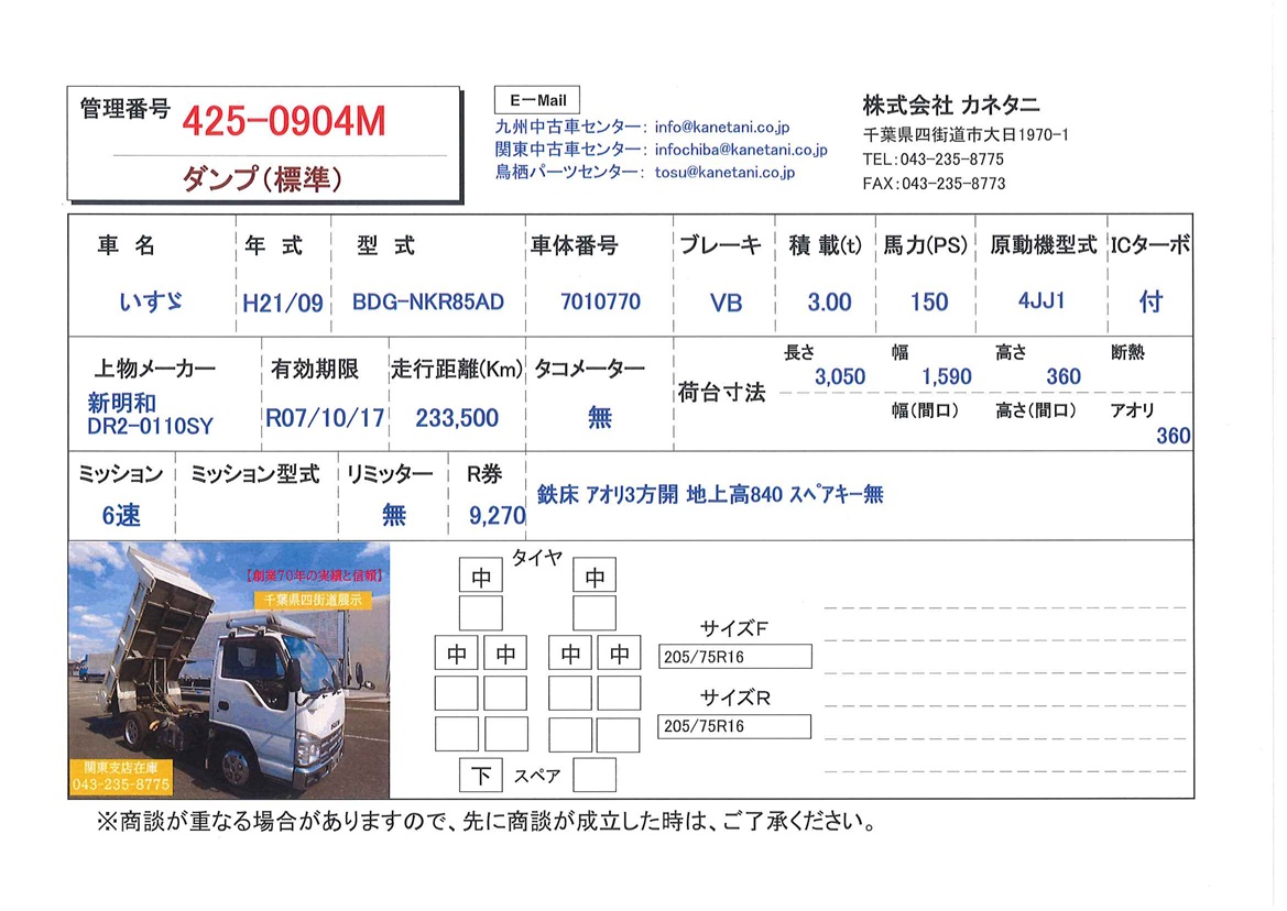 形状 | ダンプ(標準) | 年式 | H21/09 |