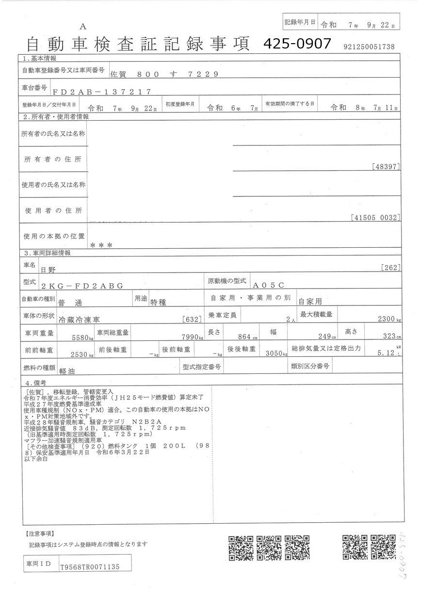 | 形状 | 冷凍車 | 年式 | R06/07 |