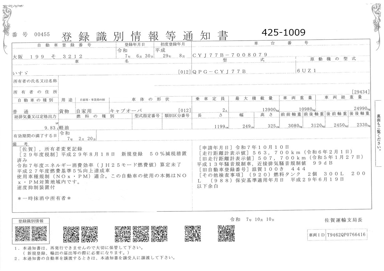 お問い合わせ番号:425-1009J| クラス(車両) | 大型 | メーカー | いすゞ |